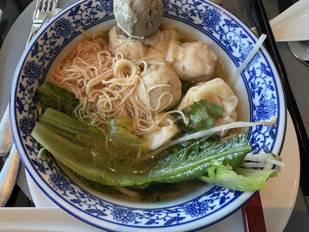 プリプリのエビワンタンと魚やエビのつみれにあっさりしたスープの組み合わせが絶妙で、朝から幸せな気分になれます。