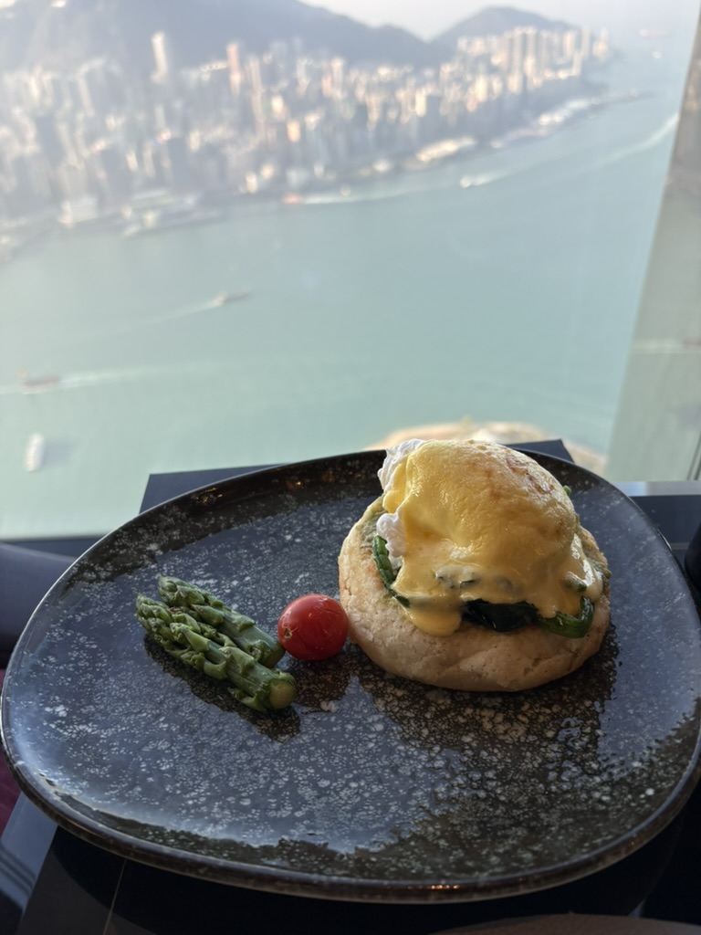 リッツ・カールトン香港の朝食は、地上102階のThe Lounge & Barで提供される、まさに「天空のビュッフェ」。